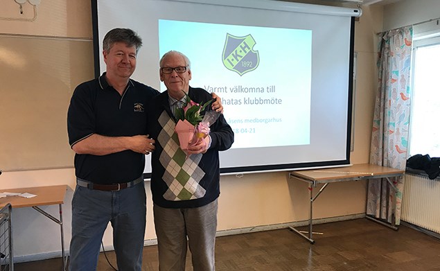 I lördags var det klubbmöte i Lionsalen hos Hägerstensåsens medborgarhus. Det blev ett väl genomfört möte som leddes av klubbens ordförande Urban Mesch (t.v på bild). Innan mötet sattes igång så uppvaktade man klubbens revisor och den mångårige medlemmen som också dessutom är en av klubbens hedersledamöter, Erik Lindquist (t.h på bild), med blommor då denne fyllt 80 år. Värt att nämna är att Erik suttit i styrelsen under hela t r e t t i o år, främst som ordinarie kassör! Sen fortsatte man med parentation för klubbens bortgångna medlemmar och dessa var följande, hedersmedlemmarna Sonja Dahlgren och Henry Johansson samt medlemmarna Inga-Britta Axberg, Harriet Svärd och Kerstin Andersson. Urban berättade också samtidigt lite kort om vilka dessa var och deras insatser hos klubben. Själva mötet gick till smidigt där man efter diskussioner med kloka synpunkter klubbade genom styrelsens förslag gällande verksamhetsplan och medlemsavgifter för verksamhetsåret den 1 augusti 2018 – 31 juli 2019. Beslutet gällande medlemsavgifterna innebär förändringar för klubbens medlemmar och det är att man tar bort den reducerade avgiften för pensionärer som idag kostar 300 kr istället så halverar man övriga medlemsavgifter så att det från och med den 1 augusti 2018 kommer att kosta enligt nedan. 0-19 år 100 kr 20 år och uppåt 200 kr Familjemedlemskap 300 kr Protokollet från klubbmötet kommer att läggas upp på webbsidan, vi meddelar när den är signerat och upplagt.
