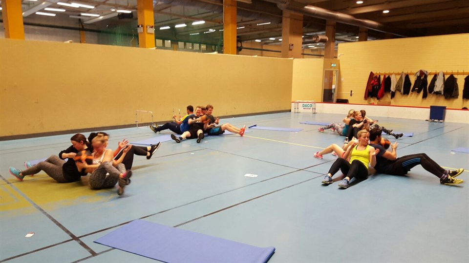 Idag var vi nästan lika många, 13 personer kom idag, och några var nya ansikten, jätteroligt! Vi har också fått in medicinbollar, 5 och 10 kilosskiva, och lånat in några hantlar, så musklerna fick jobba lite mer. Så man fick välja om man ville ha kroppen som vikt eller lägga till några kilo mer. Burbeeps är nog den mest jobbigaste delen, det sägs också att burbeeps är något som man har hatkärlek inom träningsvärlden men man kunde se att flera av dom som har kommit varje måndagar utvecklat genom att hoppa högre och snabbare. Efter ett par helkroppsvarv så körde vi ett varv mage, och avslutade med lite extra mage övningar med 5 kilosboll, och flera blev helt slutkörda! Att leka är också viktigt, så vi hann med båda doppboll (med 5 kilosboll) och tre i rad (XO), det med 5 kilos boll också. Nästa vecka kör vi lite annorlunda övningar, och avslutar nog med flaggleken. Vem minns flaggleken från grundskolan eller lägerverksamhet? Häng med nästa måndag! Johanna Karmgård